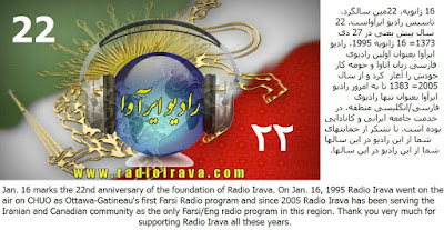 Jan. 16 marks the 22nd anniversary of the foundation of Radio Irava. On Jan. 16, 1995 Radio Irava went on the air as Ottawa-Gatineau's first Farsi Radio program and since 2005 Radio Irava has been serving the Iranian and